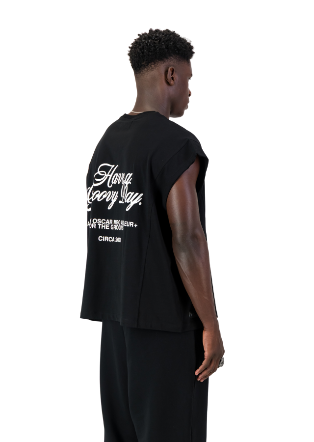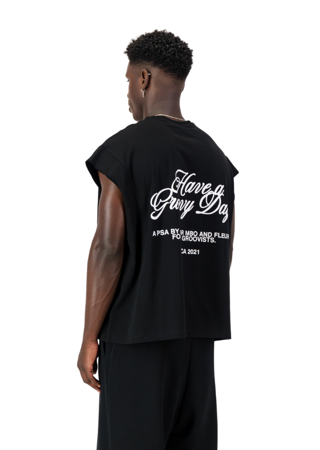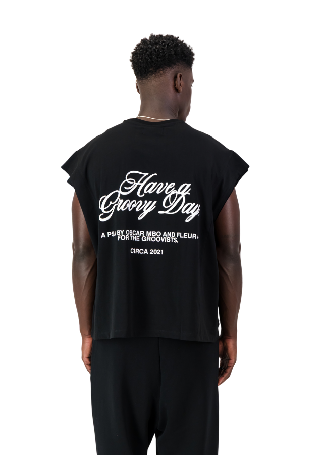 HAVE A GROOVY DAY BLACK ARMLESS T-SHIRT